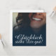 ¡Glücklich steht Dir gut! Kompliment Karte mit lachendem Frauengesicht und handschriftlichen Grüßen auf der Vorderseite der Karte. Restliche Flächen stehen zur freien Verfügung.