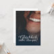 ¡Glücklich steht Dir gut! Kompliment Karte mit lachendem Frauengesicht und handschriftlichen Grüßen auf der Vorderseite der Karte. Restliche Flächen stehen zur freien Verfügung.