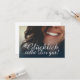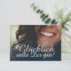¡Glücklich steht Dir gut! Kompliment Karte mit lachendem Frauengesicht und handschriftlichen Grüßen auf der Vorderseite der Karte. Restliche Flächen stehen zur freien Verfügung.