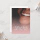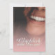 ¡Glücklich steht Dir gut! Kompliment Karte mit lachendem Frauengesicht und handschriftlichen Grüßen auf der Vorderseite der Karte. Restliche Flächen stehen zur freien Verfügung.