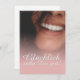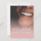 ¡Glücklich steht Dir gut! Kompliment Karte mit lachendem Frauengesicht und handschriftlichen Grüßen auf der Vorderseite der Karte. Restliche Flächen stehen zur freien Verfügung.