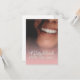 ¡Glücklich steht Dir gut! Kompliment Karte mit lachendem Frauengesicht und handschriftlichen Grüßen auf der Vorderseite der Karte. Restliche Flächen stehen zur freien Verfügung.