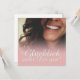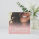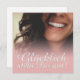 ¡Glücklich steht Dir gut! Kompliment Karte mit lachendem Frauengesicht und handschriftlichen Grüßen auf der Vorderseite der Karte. Restliche Flächen stehen zur freien Verfügung.