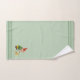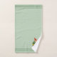 Cute gnome with gold coins and three stripes on light laurel green. Elegant modern towel set. Image only on one side.