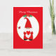 Gnomo de Navidad lindo y pájaro en tarjeta de vacaciones roja y blanca.