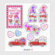 Gnomos con pegatinas de San Valentín de camiones rojos pequeños. Con la obra de arte original de "camión rojo pequeño" de Rick Ellinger. Perfecto para decorar tus artículos para el Día de San Valentín. También es bueno para decorar tu álbum de recortes o tus tarjetas y sobres de San Valentín. 10 pegatinas individuales. Las pegatinas de gnomos miden 3" de alto. Las pegatinas de camiones miden más de 3" de largo. La pegatina rectangular "¡Feliz San Valentín Gnomie!" mide 4" de alto.