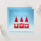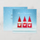 Hermosos gnomos de Navidad en fondo invernal azul claro. El texto se puede personalizar.