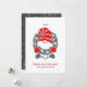 Un simpático gnomo de la tradición popular nórdica adorna estas tarjetas festivas y navideñas en tonos rojos y grises sobre fondo blanco.