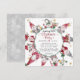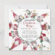 "Tarjeta de vacaciones de Fiesta de Navidad de Gnomos Lindos Rojo Gris." Ilustración de acuarela de un círculo de gnomos con texto como: Paz, Amor, Alegría, Me Encantan los Gnomos y más. El fondo tiene estrellas doradas dispersas y copos de nieve que te invitan a una Alegre Fiesta de Navidad. El reverso tiene un fondo gris suave con un patrón de copos de nieve que caen. Arte de Audrey Jeanne Roberts, derechos de autor.