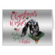 PERSONALIZAR ESTA tarjeta de Navidades - Retrato adorable de una cabra bebé nubia con Navidades verdes, heces y bayas, un arco rojo y mistletoe - con un texto caligráfico ornamental que dice: Deseos de Navidades y Besos de Cabra Bebé todo sobre un fondo extraíble de plata - remover el fondo para revelar el blanco o elegir cualquier fondo de color que te guste del personalizar recolector de color - Perfecto para la cabra la familia - no se sorprenderán de ver esta tarjeta única de Navidades de cabras de Navidades originales en su buzón. Un original ©goatlady GetYerGoat™. (Este es Chuck- propiedad de Sue Weaver - pintada y vendida con su permiso - Ella tiene cabras tan hermosas)
