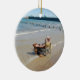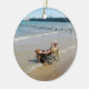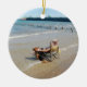 Esto es un ornamento personal de mi marido que se relaja en la playa con su compañero y mejor amigo constantes, nuestro perro. Era un día muy caliente a finales del verano y él puso su silla de playa en el agua con las ondas que se lavaban sobre ellas. El mejor amigo del hombre y de la mujer es a menudo su perro, que las ama incondicional y sacrificaría su vida para ahorrarlas.