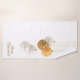 Decorative globes of gold and white make an elegant look as they hang asymmetrically from golden chords. You can change the text to read Happy Holidays, Seasons Greetings, Noel or whatever fits your needs.