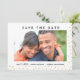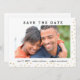 Una carta muy dulce y romántica, excepto la de fecha, muestra la foto de tu pareja rodeada de pequeños corazones dorados. En la parte delantera, los corazones se colocan en el margen derecho e inferior. Guardar la fecha se escribe en la parte superior de la imagen. Una línea de texto a lo largo de la parte inferior de la imagen le permite personalizar su mensaje. ¡Felicitaciones a su boda!