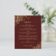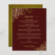 Estos bonitos menús bodas son sencillos, elegantes y elegantes, a la vez que asequibles y asequibles. Presentan un diseño elegante y glamuroso con encaje de Relieve metalizado dorado falso y caligrafía de escritura sobre fondo marrón chocolate o auburn. El dorso es un bonito color dorado de mármol.
