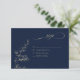 A gold and navy wedding RSVP card with botanical elements