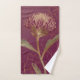 This towel features a striking protea flower illustrated in fine gold linework set against a rich burgundy background. The detailed petals and flowing botanical accents create a refined and visually calming composition, blending natural inspiration with a modern minimal touch. The deep color palette paired with warm metallic tones gives it a bold yet elegant presence, making it a beautiful addition to both everyday use and decorative spaces. Perfect for adding a sophisticated botanical element to your home while keeping a clean and polished look.