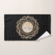 A symmetrical mandala design featuring intricate a yin yang floral pattern in gold and silver.