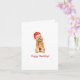 Lindo Golden doodle con sombrero de Santa ilustrado con acuarela tarjeta de saludos de vacaciones doblada.
