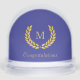 Elegant golden monogram and laurel wreath on blue Snow Globe. Name and more text to be personalized on the back side. Great for graduations, teacher, new job, promotion, anniversary and more.