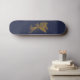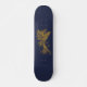 un diseño de lino dorado decorativo de un ave fénix en alza sobre un patinaje de color azul oscuro