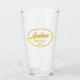 Beer glass for the wedding Best Man that features his name printed in a trendy, golden yellow color, stylized script inside a golden yellow color oval border along with wedding year date. Personalize your beer glass by editing and replacing name and date with your own. Available in many, popular wedding color schemes.