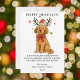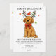 Envía un saludo increíblemente adorable con esta linda y artística tarjeta de Navidad para mascotas. Cuenta con una hermosa ilustración de acuarela de un perro (perfecta para Golden Retrievers o Doodles) que lleva antleras de reno iluminadas y un gran lazo rojo. La apariencia de alta calidad, pintada a mano y el diseño limpio hacen que esta tarjeta sea verdaderamente encantadora. Perfecta para familias amantes de los perros que quieren una forma dulce, encantadora y elegante de compartir sus deseos de paz, risa y unas muy Felices Fiestas.