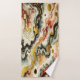 Ein abstraktes Gemälde mit goldenen Flüssen, die sich durch die Farben Weiß, Rot, Blau und Schwarz schlängeln. Die dynamischen Muster entstehen durch die Technik des Fluid Paintings.