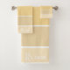 Es un clásico. Bloqueo de color en varios tonos de amarillo, dorado, crema de mantequilla con divisores blancos y monograma en la base de la toalla. Disponible en diferentes tonalidades.