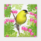 Diseño original de arte fino de un macho americano Goldfinch en flores de jardín del corazón sangrante de la artista Carolyn McFann impreso en un imán de calidad para todos los que aman a las aves.