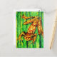 Una rana de árbol dorada es retratada contra un brillante fondo verde en esta pintura acuarela.