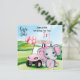 Celebra tu primer cumpleaños con esta encantadora invitación temática al golf que incluye un dulce elefante y un carrito de golf rosa. El diseño de la acuarela es llamativo, con globos pastel, acentos florales y una bandera con el número "1" que marca este hito especial. Ubicado en un exuberante campo de golf, esta invitación es perfecta para una divertida y elegante fiesta de cumpleaños relacionada con el golf para su bebé. ¡Inviten a la familia y amigos a una celebración trivial que nunca olvidarán!