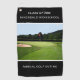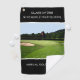 Toalla de golf Personalizar 18th Hole. El diseño muestra un enfoque ilustrado de verde con trampa y bandera con 3 áreas para texto personalizar o eliminar texto de muestra.