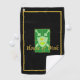 Divertida toalla deportiva con un diseño escudo de estilo medieval para jugadores de pickleball, ha cruzado espadas en el escudo con cancha de pickleball, y el texto dorado "House of Dink" y borde sobre fondo negro