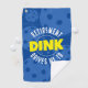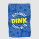 Gracioso golf de pista de baloncesto o toalla de bolso con "Jubilación me lleva a Dink" diciendo en azul y amarillo brillante en negrita y brillante texto, un regalo de retiro perfecto para un jugador de pickleball O alguien que recientemente empezó a jugar pickleball después de retirarse y comenzar un nuevo hobby deportivo.