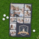 Celebra este Día del Padre o Día de los Abuelos con este impresionante toalla de personalizado de collage de fotos. El diseño azul marino incluye ocho fotos cuadradas (una grande y siete pequeñas) con una insignia temática al golf que lleva las palabras "Mejor Pappous de Par" con laureles verdes y una bolsa de golf.
