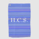 La toalla de oro monograma personalizada tiene líneas finas con un fondo de color azul. HAmbyWhiteGlove