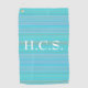 La toalla de oro monograma personalizada tiene líneas finas con un fondo de color acuático. HAmbyWhiteGlove