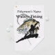 El diseño personalizado perfecto para los locos por Walleye. El nombre del pescador en la parte superior y a todo color de la imagen detallada de un poderoso toothy Walleye con el texto Walleye Fishing Ninja dentro de la silueta de un ninja con una barra de pesca doblada de un morillo enganchado.