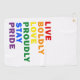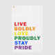 Viva el amor orgullosamente Quédese orgulloso el diseño de toallas de golf en la tipografía moderna que dice "VIVO AMOR VIVO ORGULLOSO MANTENER ORGULLO" en un diseño minimalista simple pero limpio. Diseño sencillo en colores de arcoiris del Orgullo que funciona muy bien para cualquiera.