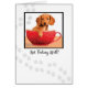 Este querido cachorro dachsund se mantiene cálido y acogedor en una taza. La taza roja con puntos suaves añade encanto a la habitación ya que se desea que alguien se recupere y se sienta mejor. Papel de impresión a lo largo de la parte delantera de la tarjeta.