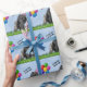 Foto de un gorila con algunos textos y ilustraciones añadidos para un papel envuelto muy lindo