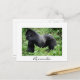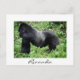 Postal de un fuerte gorila de montaña silvestre, líder del grupo, en su hábitat natural en la selva verde del medio África en el 'Parque Nacional Volcanes' en Ruanda con una frontera blanca y el texto: 'Ruanda'.