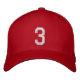 3 Tres gorras de béisbol con letras en blanco bordado.