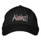 Una fresca gorra bordada con una flor tropical en el texto giratorio Aloha. Muchos colores y estilos. CÓDIGO DE DISEÑO: PW