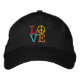 Un diseño de Pop Art LOVE con un cartel de paz bordado en una gorra de algodón.
