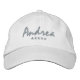 Nombre de Andrea bordado en letras blandas de bonito rosada para tu mujer o chica favorita llamada Andrea. Acondicionado con 5 estrellas de flores a juego.
