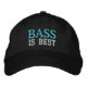 El gorra bordado negro tiene el lema Bass is Best en azul. Gran regalo para cualquier jugador de bajo, jugador de bajo o cantante de bajo en grupos de coro, coro o barbería.