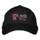 Cáncer de mama Yo ganaré cápsulas bordadas y Gorras con un lazo rosado en el corazón para promover la toma de conciencia sobre el cáncer de mama. Bookmark CancerApparelGifts.Com como almacén para todo el conocimiento sobre el cáncer: