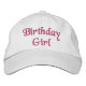 Chica de cumpleaños es la frase de texto para su celebración, con la cita escrita en rosa en dos líneas, o cambio a Feliz cumpleaños, Chica de playa o cualquier otro texto. Elija el color del gorra, el color del texto, el estilo de fuente y el tamaño del texto se puede reducir para que se ajuste si es necesario. La redacción se realiza con costura bordada para una calidad duradera.