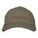 Hilos de Distrito Bordados a Mano Gorra de béisbol de twill de chino desgastado en color verde oliva claro con diseño gráfico digital y tipografía de letra "Bridesmaid" en texto rosa por TheFabricSeal tienda de impresión bajo demanda en Zazzle.com #ZazzleMade https://www.zazzle.com/store/thefabricseal TheFabricSeal Original.
